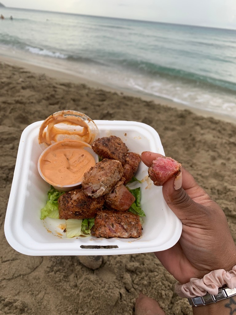 At Rainbow Beach we grabbed bites from Rhythms, which offers drinks, starters and entrees. Try their blackened Mahi Mahi and their fried shrimp with fries always made fresh. If you find yourself at Cane Bay beach, visit Leatherback Landing and try their tuna bites, trust me you will be going back for more.